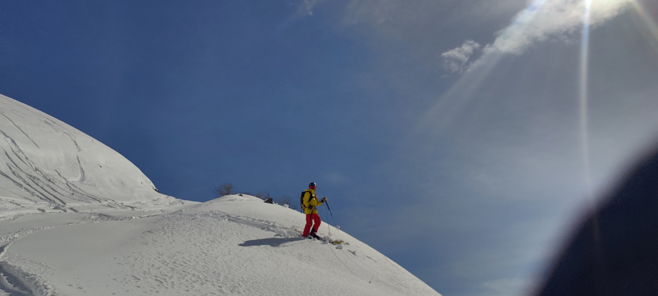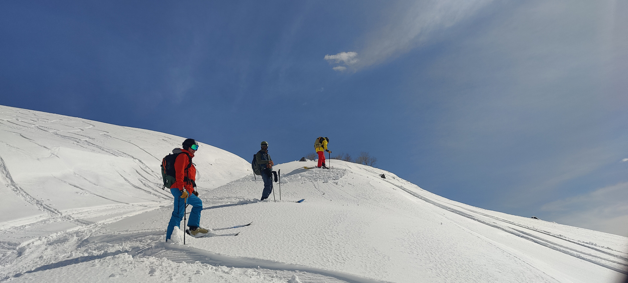 Today's skiing focuses on the impressive terrain around Mt. Sadzele and Mt. Bidara. Using the lift system combined with short skinning sections, you will reach excellent off-piste slopes offering long and exciting descents.